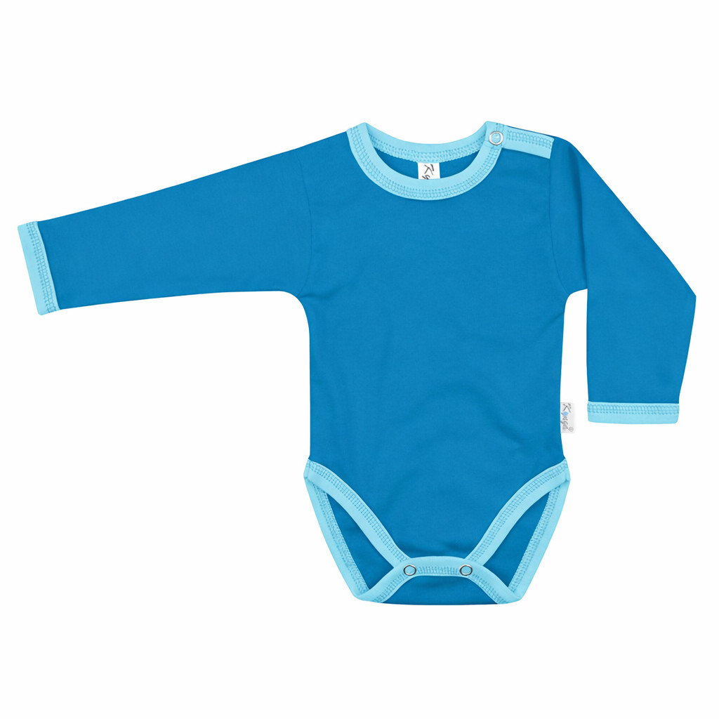 Kynga azúrkék-ciánkék hosszú ujjú baba body 86
