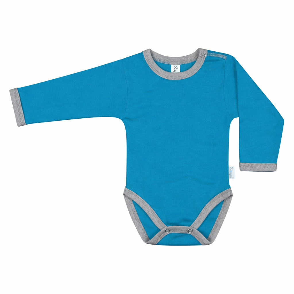 Kynga azúrkék-melírszürke hosszú ujjú baba body 86