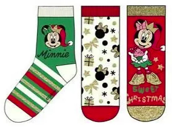 Mickey, Minnie Karácsony gyerek bokazokni 3 pár/csomag 23-34 Nr4